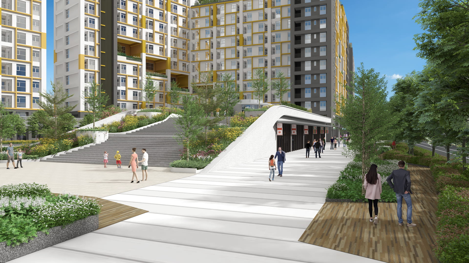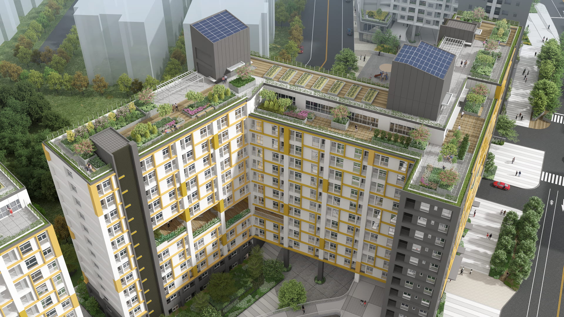 透過設置與鄰里開放空間串聯的公共空間,將與社區鄰居產生共食、共居、共同享樂等活動, 達成社會住宅共生的概念,透過社會住宅創造出一個可以共同成長、分享、連結的生活環境。